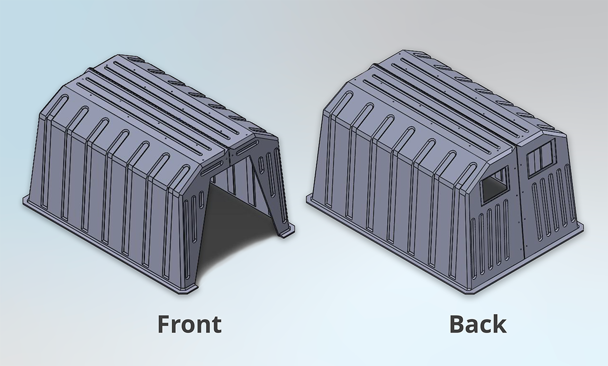 I began the design process by completing market research to determine key features on the market, additional needs for the end users, in-house processing parameters and patent infringement issues. Next, I developed two calf hutch concepts that were designed to be thermoformed. This design process required precise drafting and tooling techniques to ensure that after the plastic is cooled that it’s able to be easily removed from the mold.