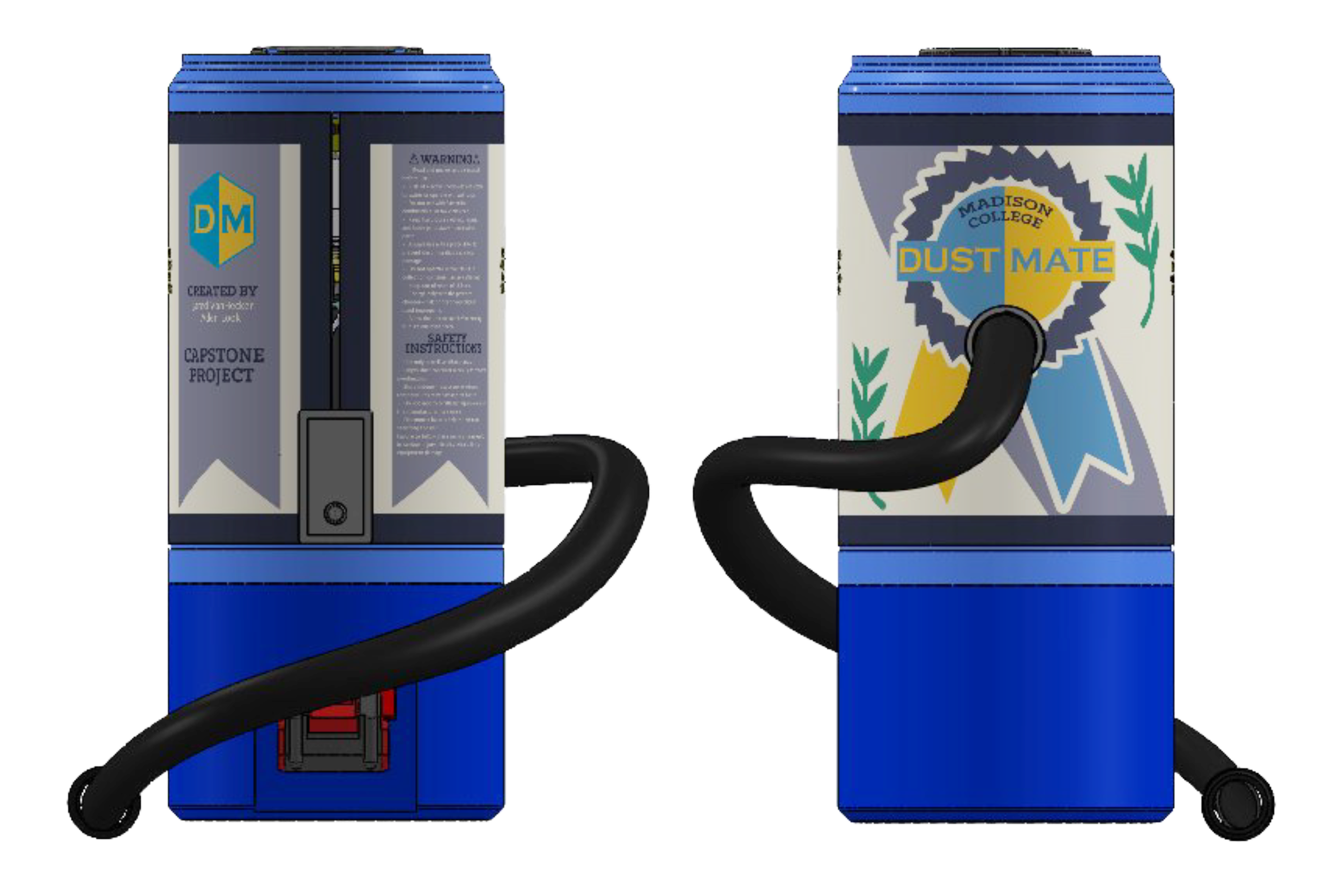 For our Capstone project, we were tasked with coming up with a unique product that would meet a need in the market. My team decided to design a portable, compact and easy to use sawdust vacuum. Other solutions on the market are either bulky and expensive or corded and aren’t easy to maneuver in work stations.