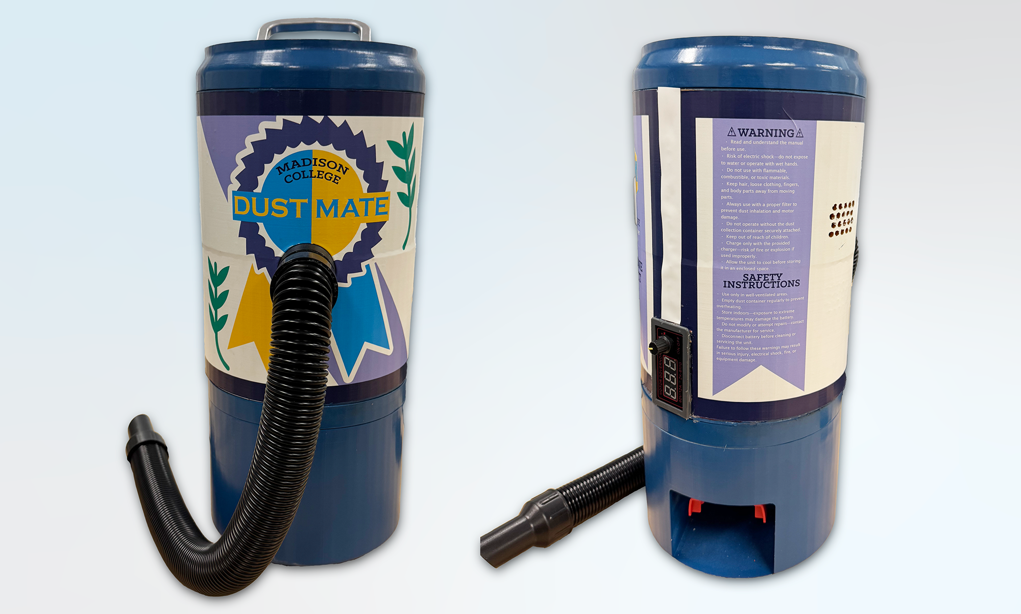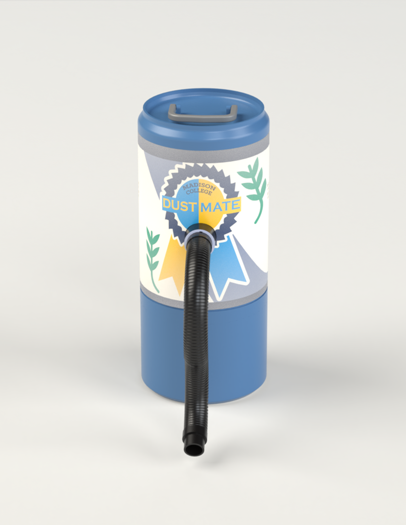 Our product is a compact, fun, and easy-to-use sawdust vacuum. The DustMate is able to collect dust as you use other tools. The compact design allows it to be out of the way but still effective. The flexible hose helps reach any position while you work, collecting sawdust as it is being made.